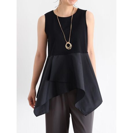 ■レイヤードスタイルに大活躍!裾部分に重ねたフリルが目を惹くデザインノースリーブトップス。