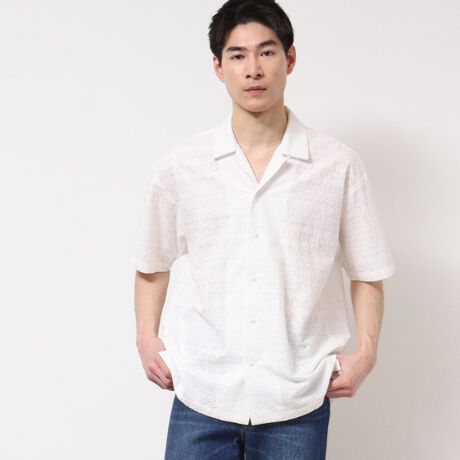 柄のシャツなのでシンプルなボトムスとの合わせもおすすめです。