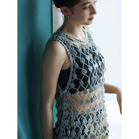 手編みのかぎ針編みでハンドワーク感が魅力のタンクは足すだけでいつものスタイルをブラッシュアップしてくれる一枚。