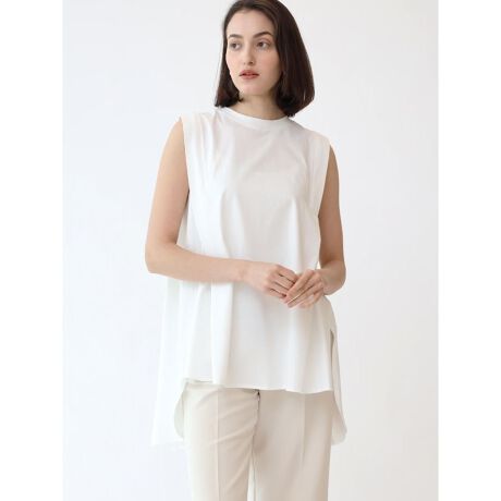 腰回りを覆う長めのレングスで、裾の動きや体から程よく離れる趣ある横姿が魅力。品の良さとラフさが調和した大人のための一枚。ブラウスのような感覚で着こなしを楽しむことができ、一枚でスタイリングが完結する暑い時期におすすめのデザインカットソーです。