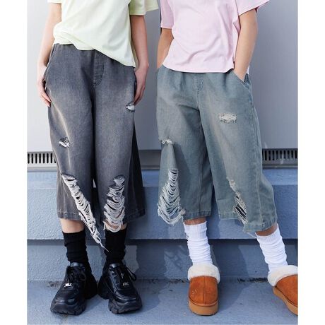 ルーズなシルエット&ダメージ感がたまらなくオシャレなワイドハーフパンツ★