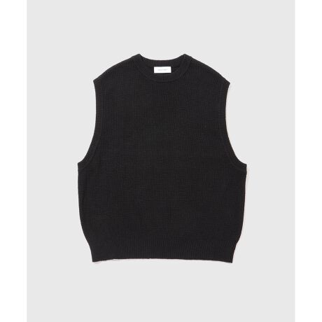 少しドロップした肩と深めに開いたアームホールが特徴で、リラックスして着こなしていただけるサイジングのベストです。