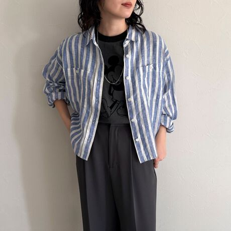 合わせやすさ抜群なクロップド丈リネンシャツ