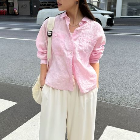 合わせやすさ抜群なクロップド丈リネンシャツ