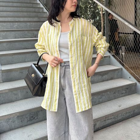 ラフな印象に見せてくれるリネンバンドカラーシャツ