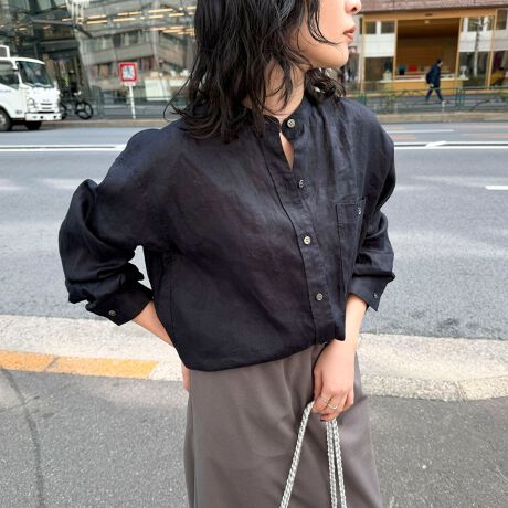LINEN100バンドカラーシャツ