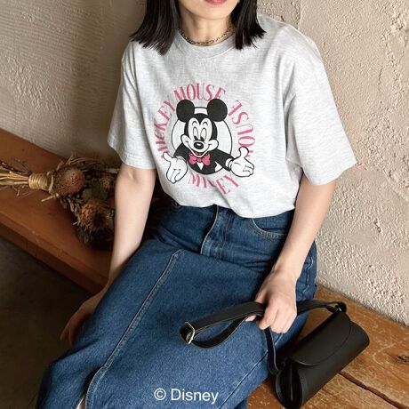 ヴィンテージっぽさのある生地感に、レトロ風の「ミッキーマウス」プリントが大人かわいいアイテム。