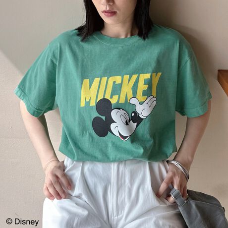 人気キャラクター「ミッキーマウス」とロゴカラーがアクセントになったヴィンテージライクなTシャツ。
