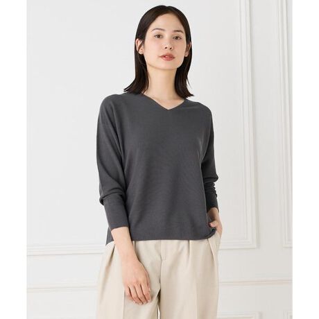 上品な微光沢で繊細な雰囲気を持ち、適度なドライタッチで清涼感も兼ね備えた、オリジナル素材を使用しております。快適な着心地は通年にわたり心地よく着用できます。 シルクのような美しい光沢感が特徴のVネックプルオーバーです。ホールガーメント機によって繊細に編み立てました。開き過ぎないVネックのラインが美しく、抜け感があり首元が女性らしく見えます。裾はややゆったりめに作っている為、トップスアウトや、前だけインしても着ていただけます。・水洗い可■素材■WHOLE GARMENT/ホールガーメント株式会社島精機製作所が独自で開発した世界初の無縫製ニット横編機によって編成された無縫製ニットウェア。ニット本来の手触りと軽さを引き立て、ドレープ性を高め、ごわつき感をもたらす縫い目をなくすことで、よりよい着心地感を実現します。※ WHOLEGARMENT及び ホールガーメントは、株式会社島精機製作所の登録商標です。Cuoo/クーフランドルがメーカーや工場の協力を得て開発した素材。肌に優しく、一年を通して快適な着心地を保つキュプラとポリエステルの交撚糸。キュプラは他の繊維と比べ、摩擦が少なく肌と触れ合っても刺激が少ないため、肌触りが良くやさしい着心地です。吸水性に優れ、べたつきにくくムレを抑えられます。夏はひんやり、冬は暖かく、通年にわたり心地よく着こなせます。