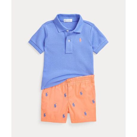 クラシックなポロシャツと、全体にシグネチャーのポニー刺繍を施したチノショートパンツを組み合わせたコットンセット。・Ralph Laurenのコットン製品を選ぶことで、環境の保護と修復に努めながら、コットン業界が今後も成長を続けられるように支援するBetter Cotton(TM)ミッションへのRalph Laurenの取り組みをサポートすることになります・本商品は物質収支方式に則って材料を調達しているため、全ての製品にBetter Cotton(TM)が含まれない可能性があります。・ポロシャツ:左胸にシグネチャーのポニー刺繍 / リブのポロカラー / 2つボタンの前立て / 半袖、リブアームバンド / ストレートなスリット入りの裾・ショートパンツ:全面にシグネチャーのポニー刺繍 / 伸縮性のあるウエストバンド / フライなし / フロント中央にボタン留め / フロントに斜めポケット2つ / 背面右にボタン付きポケット※商品の色味は、光のあたり具合など諸条件により色感が多少異なって見える場合がございますので予めご了承下さい。※注意:柄の配置は、商品によって異なります。 【素材】・上 本体:綿 100% 装飾部分を除く パンツ 本体:綿 100% 装飾部分:ポリエステル 100%【生産国】カンボジア