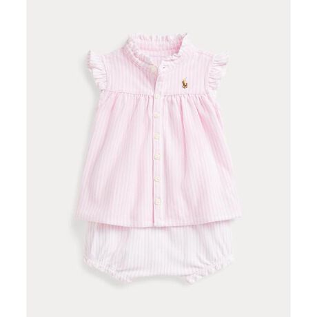 フラッタースリーブのオックスフォードシャツのルックに、コットンメッシュ素材の快適さと動きやすさを組み合わせたトップスを含むセット。お揃いのブルマーで暖かい季節にぴったりのキュートなルックが完成。・Ralph Laurenのコットン製品を選ぶことで、環境の保護と修復に努めながら、コットン業界が今後も成長を続けられるように支援するBetter Cotton(TM)ミッションへのRalph Laurenの取り組みをサポートすることになります・本商品は物質収支方式に則って材料を調達しているため、全ての製品にBetter Cotton(TM)が含まれない可能性があります。・トップス:左胸にシグネチャーであるマルチカラーのポニー刺繍 / フリル付きのバンドカラー / ボタン付き前立て / フラッタースリーブ / シャーリング入りヨーク / ヨークに裏地付き・ブルマー:右腰にシグネチャーであるマルチカラーのポニー刺繍 / 伸縮性のあるウエストバンド / 伸縮性のある裾開き※商品の色味は、光のあたり具合など諸条件により色感が多少異なって見える場合がございますので予めご了承下さい。 【素材】・上 本体:綿 100% ヨーク裏地部分:綿 100% 装飾部分を除く パンツ 本体:綿 100% 装飾部分を除く【生産国】中国
