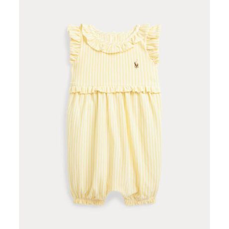 シグネチャーのコットンメッシュ素材を使用したワンピース。フリルトリムとアイコニックなマルチカラーのポニーでとびきりキュートなルックを演出・Ralph Laurenのコットン製品を選ぶことで、環境の保護と修復に努めながら、コットン業界が今後も成長を続けられるように支援するBetter Cotton(TM)ミッションへのRalph Laurenの取り組みをサポートすることになります・本商品は物質収支方式に則って材料を調達しているため、全ての製品にBetter Cotton(TM)が含まれない可能性があります。・左胸にマルチカラーのシグネチャーのポニー刺繍・フリルのオーバーレイ付きスクープネックライン / 背面中央にボタン付きプラケット / アームホールにフリルトリム / フリルトリムを施したシャーリング入りのウエスト・フリルトリム付きの伸縮性のある裾開き / 裾に隠しリングスナップ・ヨークに裏地 【素材】・本体:綿 100% ヨーク裏地部分:綿 100% 装飾部分を除く【生産国】インドネシア