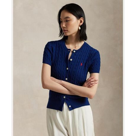 コットンを使用してシグネチャーのケーブルモチーフを細かく編み上げた半袖カーディガン。スリムなシルエットのデザインで、左胸にあしらったポニー刺繍がアクセント・スリムフィット / 腰丈・リブニットのクルーネック / ボタン付き前立て・半袖、リブニットのカフス。リブニットの裾・左胸にシグネチャーのポニー刺繍・Ralph Laurenのコットン製品を選ぶことで、環境の保護と修復に努めながら、コットン業界が今後も成長を続けられるように支援するBetter Cotton(TM)ミッションへのRalph Laurenの取り組みをサポートすることになります・本商品は物質収支方式に則って材料を調達しているため、全ての製品にBetter Cotton(TM)が含まれない可能性があります。・モデル身長178cm、着用サイズS※商品の色味は、光のあたり具合など諸条件により色感が多少異なって見える場合がございますので予めご了承下さい。 【素材】・本体:綿 100% 装飾部分を除く【生産国】中国