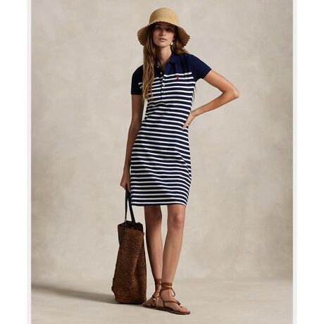 横方向の糸染めストライプをあしらった、シグネチャーのストレッチコットン メッシュ製のドレス。平編みのリブカラーや5つボタンの前立てなど、クラシックなポロシャツにインスパイアされたアイテム。・フィット & フレアのシルエット / ミッドカーフ丈・リブのポロカラー / 5つボタンの前立て / 半袖、リブカフス / 背面中央にシーム・左胸にシグネチャーのポニー刺繍・Ralph Laurenのコットン製品を選ぶことで、環境の保護と修復に努めながら、コットン業界が今後も成長を続けられるように支援するBetter Cotton(TM)ミッションへのRalph Laurenの取り組みをサポートすることになります・本商品は物質収支方式に則って材料を調達しているため、全ての製品にBetter Cotton(TM)が含まれない可能性があります。・モデル身長178cm、着用サイズS※商品の色味は、光のあたり具合など諸条件により色感が多少異なって見える場合がございますので予めご了承下さい。※注意:柄の配置は、商品によって異なります。 【素材】・本体:綿 97%、ポリウレタン 3% 衿:綿 100% 袖口:綿 100% 装飾部分を除く【生産国】トルコ