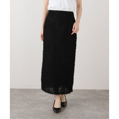 フェザーの華やかな素材感が目を惹くスカート。