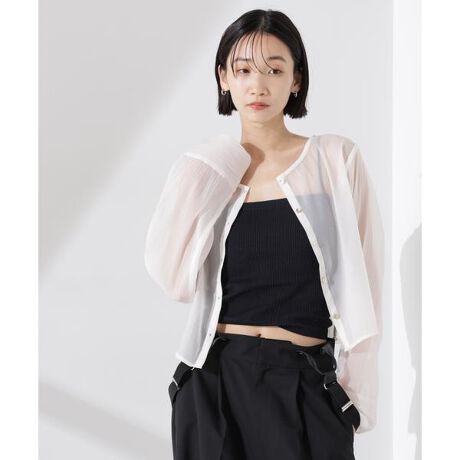 ・トレンドムードが漂うクロップド丈のシアーシャツ