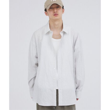 洗練されたストライプ柄と、程よいワッシャー加工が施されたファットシャツ。