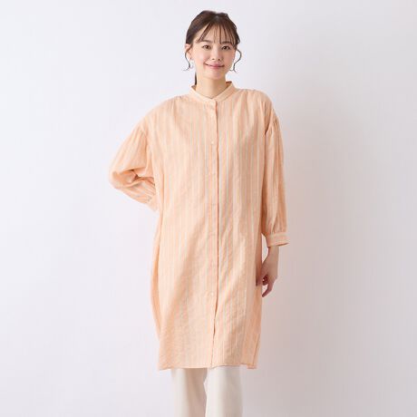 【S・Mサイズ】ウォッシャブル シアーストライプロングブラウス