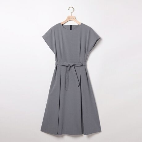 春夏の着こなしに相応しい、さっぱりとしたサッカー地を用いたワンピース。ギンガムチェックの爽やかな空気感が、装いを軽やかに映し出します。肩は切り替えがなく、ウエストをリボンで絞るデザイン。メリハリのあるシルエットを生み出します。ウエスト下に施したタックで、優美に揺れるドレープを楽しめるアイテムです。