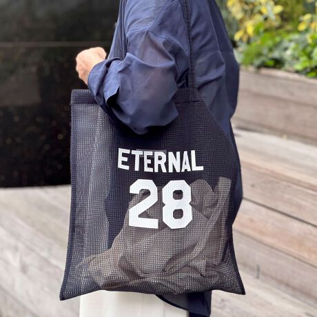 ・RiemillerダンボールメッシュプリントTシャツ(5-0037-2-03-004)と同柄、同素材のメッシュバッグ。