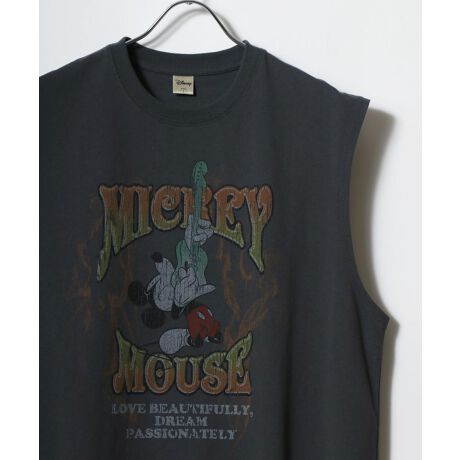 ミッキーマウス オーバーサイズ ピグメント風 ヴィンテージ ロックプリント ノースリーブ Tシャツ