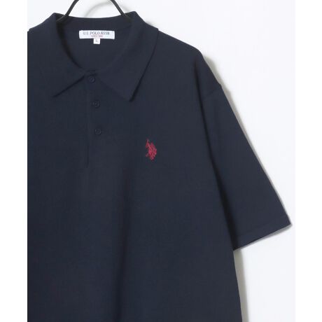 U.S. POLO ASSN./ユーエスポロアッスン オーバーサイズ ニット 無地 ストライプ ロゴ ワンポイント刺繍 半袖ポロシャツ/レディース メンズ