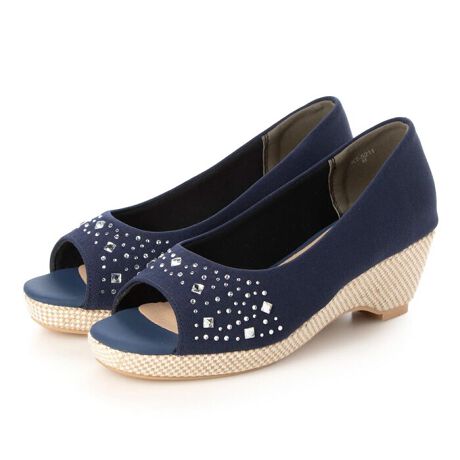 ル ソン Le son ウェッジソールビジュー付きオープントゥパンプス