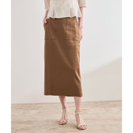 【洗える】サテンリネン ポケット付きタイトスカート【34サイズ/J'aDoRe・店舗限定】/25SS