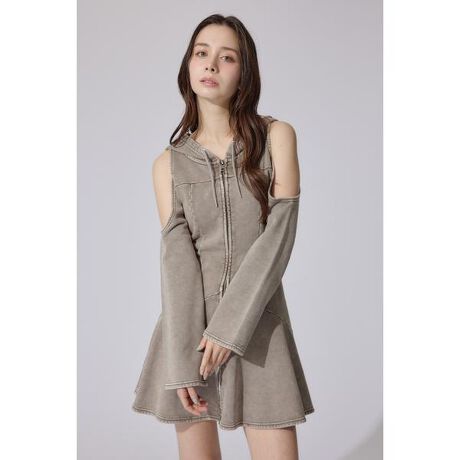 【程良く褪せたようなヴィンテージライクな風合いが魅力的なフードマーメイドスウェットワンピ】■ポイント程よく厚みのあるスウェット生地を使用し、ZIPデザインが魅力のフード付きカットワンピース。身体のラインを綺麗に魅せるマーメイドシルエットやショルダーオープンデザインが女性らしさを高めてくれます。背中もちらっと見えるようなデザインなのでヘルシーは肌見せが叶う1着です。■ディテールショルダーやバックに肌見せデザインを取りれることで、女性らしいヘルシーさをプラス。カジュアルに見えがちなフードワンピですが、マーメイドシルエットにすることでフェミニンなスタイリングも叶うようにしました。■スタイリング1枚でミニワンピとして着ても良いですし、レースフレアJ/W PT(110IS781-1121)とレイヤードして着用するのもお勧めです。■生地透け感:なし裏地:なし伸縮性:ややあり光沢感:なし厚さ:中肉■商品のお気に入り登録お気に入りアイテムの再入荷・在庫1点などの通知を受け取ることができます。[注意事項]※画像の商品はサンプルです。実際の商品と仕様、加工が若干異なる場合があります。※画像の商品は光の照射や角度、お使いのモニター環境により、実物と色味が異なる場合がございます。※着用、お取り扱いの際は、アテンションタグをご確認ください。