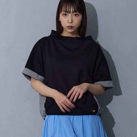 ゆったりしたシルエットなので、タイトなパンツやスカート合わせスッキリさせたり、ボリュームのあるボトムスとあわせるときは裾シェイプさせても◎