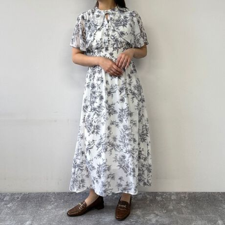 ケープデザインとシフォン生地がフェミニンなワンピース。