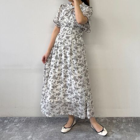 ケープデザインとシフォン生地がフェミニンなワンピース。