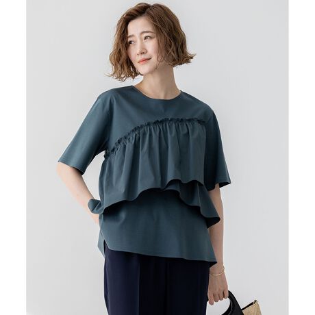 【汗じみ防止/洗える】ランダムフリルジャージー ドッキング カットソー