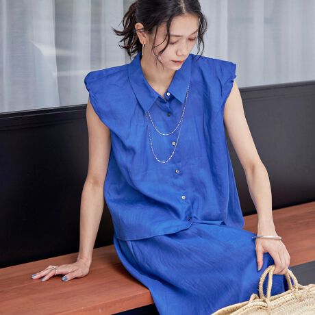 通常のラミーと違って表面感に毛羽立ちとゴワつきがなく、快適な清涼感のある着心地です。