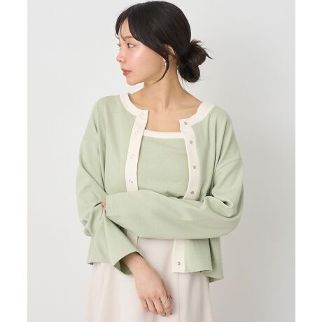 コットンベースで仕立た細リブカットソーアンサンブル。短丈ワイドな旬のカーディガンはフロントスナップボタン仕様でカジュアルに合わせられるデザインです。シンプルなインナーキャミソールも同様に配色ラインの切り替えがポイント。それぞれ単体でも活躍し、様々なボトムと相性の良い汎用性抜群のセットアイテムです。透け感[なし]