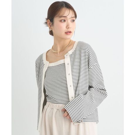 コットンベースで仕立た細リブカットソーアンサンブル。短丈ワイドな旬のカーディガンはフロントスナップボタン仕様でカジュアルに合わせられるデザインです。シンプルなインナーキャミソールも同様に配色ラインの切り替えがポイント。それぞれ単体でも活躍し、様々なボトムと相性の良い汎用性抜群のセットアイテムです。透け感[なし]