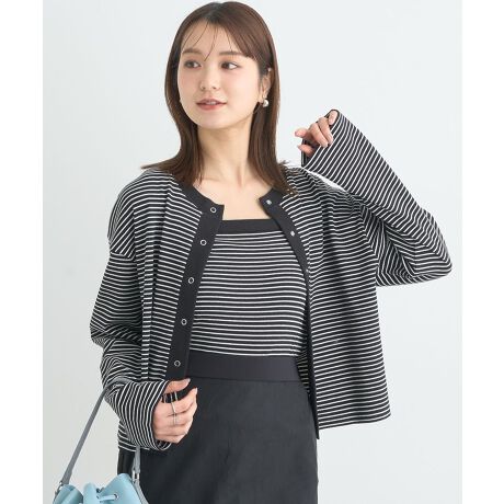 コットンベースで仕立た細リブカットソーアンサンブル。短丈ワイドな旬のカーディガンはフロントスナップボタン仕様でカジュアルに合わせられるデザインです。シンプルなインナーキャミソールも同様に配色ラインの切り替えがポイント。それぞれ単体でも活躍し、様々なボトムと相性の良い汎用性抜群のセットアイテムです。透け感[なし]