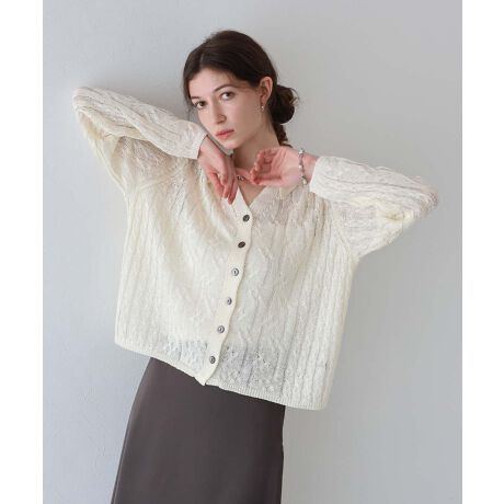 涼しげな透かし編みデザインが特徴のニットカーディガン。