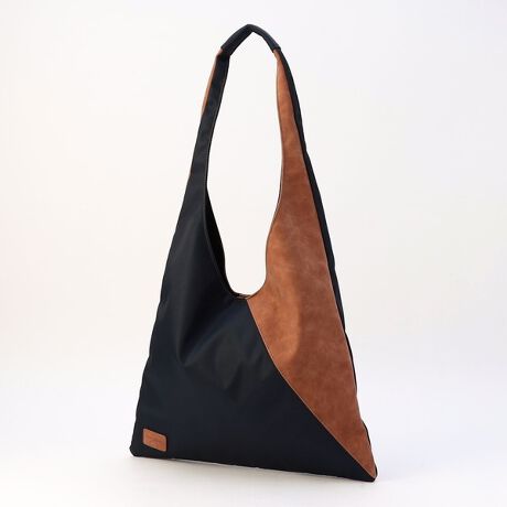 三角形のシルエットがシャープな印象のショルダーバッグ。
