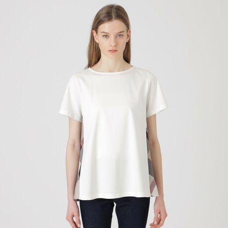 サイドのクレストブリッジチェックがポイントのAラインのカットソーです。