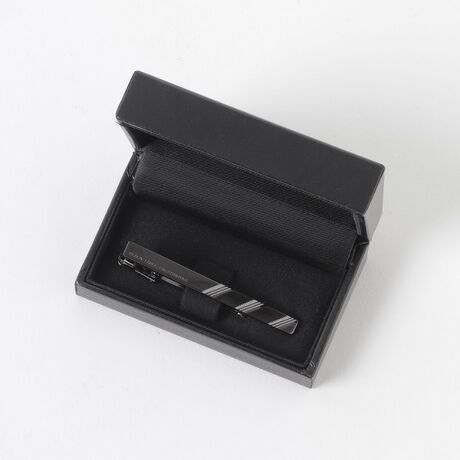 プレートの片側に繊細なカットでストライプを施したシンプルでスタイリッシュなデザインのタイバーです。汎用性が高く、ギフトにもオススメの1品です。