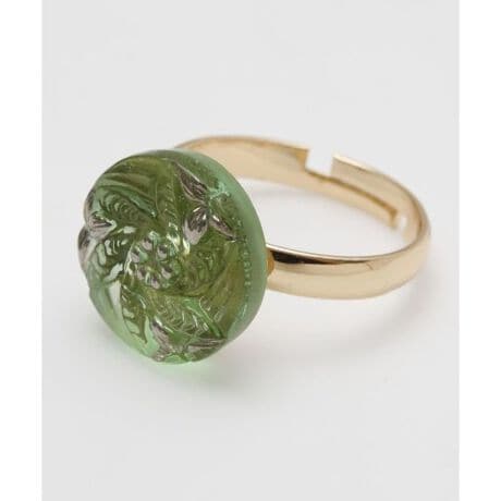 [型番:LSJZ5102-2025]チェコのガラスボタンをアレンジした、小ぶりなリング。コーデに馴染みやすいやさしいカラーで、レトロな花柄が素敵。サイズ調整可能です。ガラスボタンは、現地の工房で昔ながらの手作業でひとつひとつ丁寧に作られています。