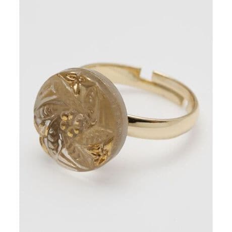 [型番:LSJZ5102-2025]チェコのガラスボタンをアレンジした、小ぶりなリング。コーデに馴染みやすいやさしいカラーで、レトロな花柄が素敵。サイズ調整可能です。ガラスボタンは、現地の工房で昔ながらの手作業でひとつひとつ丁寧に作られています。