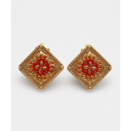 [型番:LSJZ5105-2025]レトロな魅力あふれる、チェコのガラスボタンをアレンジしたイヤリング。ガラスボタンは、現地の工房で昔ながらの手作業でひとつひとつ丁寧に作られました。存在感があり、耳元を美しく演出してくれます。
