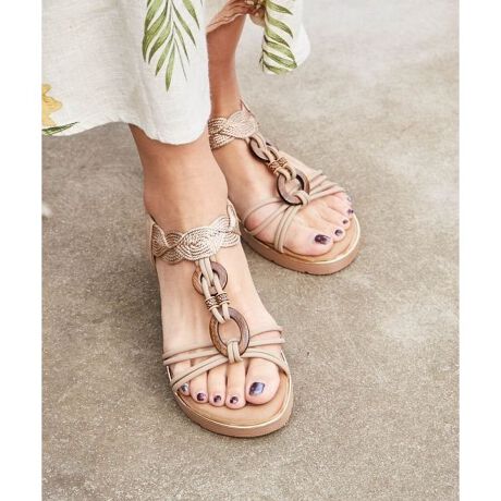 [型番:4COP5104-2025]ハワイのリゾートを歩く姿を連想させるサンダル。ナル(波)のような足首のベルト、タパ模様のビーズがポイント。クッション性の高い履き心地で長時間履いても疲れにくい。