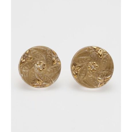 [型番:LSJZ5101-2025]チェコのガラスボタンをアレンジした、小ぶりなポストタイプのピアス。コーデに馴染みやすいやさしいカラーで、レトロな花柄が素敵。ガラスボタンは、現地の工房で昔ながらの手作業でひとつひとつ丁寧に作られています。