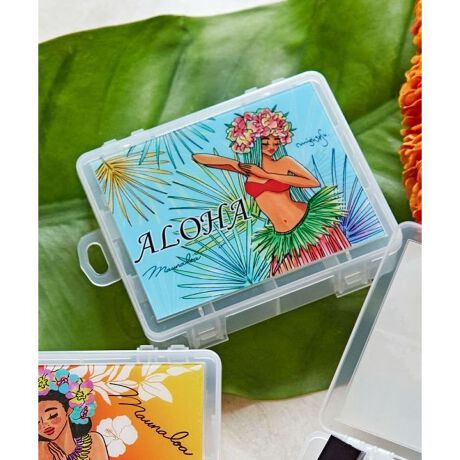 人気の'Mighty Su'アート。華やかなステージメイクに欠かせないつけまつげやメイクアップアイテムを収納できるケース。取り外し可能な仕切り付きで、フラダンサーひとりひとりに合わせた使い方ができます。「フラライフをハワイで彩り、心躍る日常を過ごして頂きたい」という願いを込めて、フラダンサーの「あったらいいな」の声を商品化しました。優雅に踊るフラガールが目を惹く可愛いデザイン。