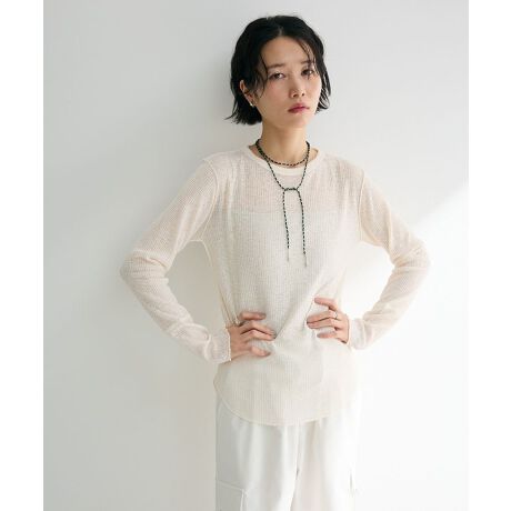 ふんわり軽やかなワッフル編みのシアープルオーバー。アウトラインに施したメロー始末がおしゃれなデザインです。ソフトなフィット感が女性らしいシルエットを叶え、前後差ラウンドヘムがこなれた雰囲気を演出。レイヤードの着こなしに一枚加えるだけで新鮮さを演出してくれるおすすめアイテムです。透け感[あり]