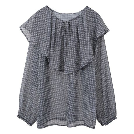 チェックシアーフリルブラウス