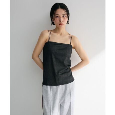 旬のレイヤードスタイルに活躍してくれるカップ付きキャミソール。華奢なダブルストラップにバックをクロスさせたデザインが女性らしさを引き立ててくれます。程よく身体にフィットする快適な着用感も魅力的。上品に艶めく箔プリントがコーディネートに華やかさをプラスしてくれるおすすめのインナーアイテムです。透け感[なし]